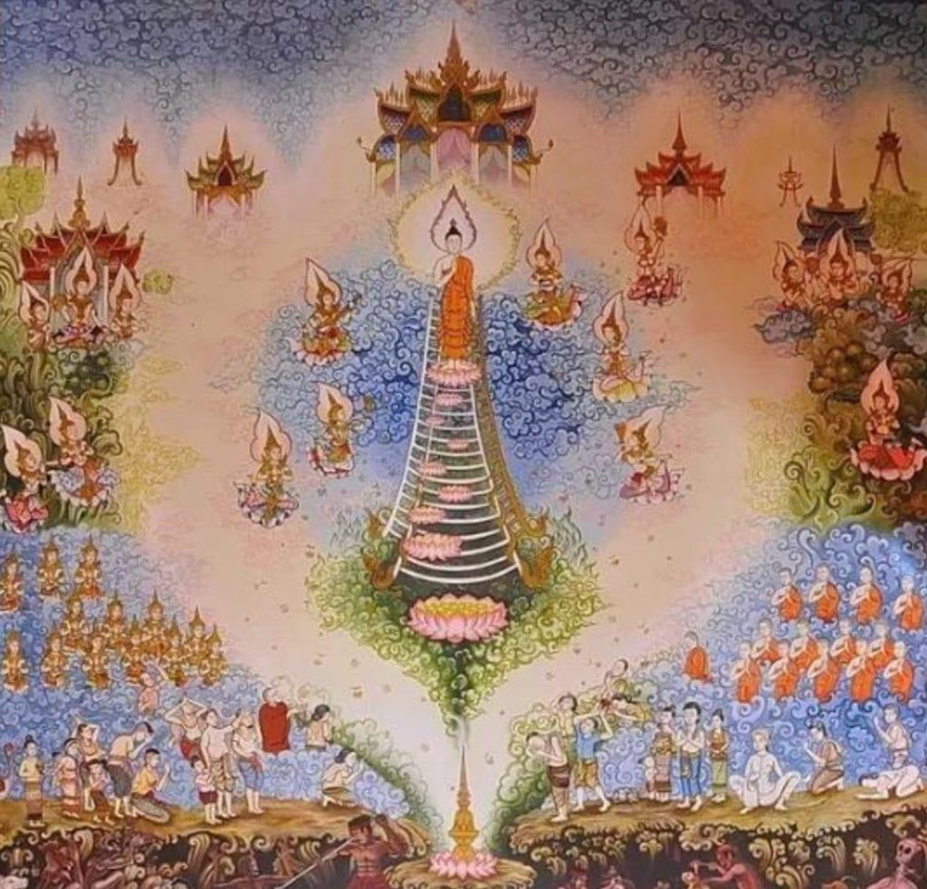 三個月說法圓滿後,佛陀準備返回人間。此日被稱為 「天降日」。
